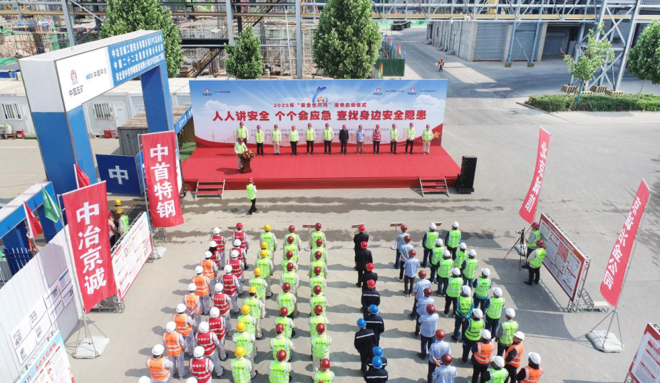 5月29日,工業工程公司與中冶京誠工程技術有限公司、中國二十二冶集團有限公司在唐山興隆鋼鐵ESP超薄帶鋼生產線工程項目共同舉行2025年“安全生產月”啟動儀式。此次活動以“人人講安全、個個會應急—查找身邊安全隱患”為主題,旨在強化全員安全意識,提升應急處置能力。