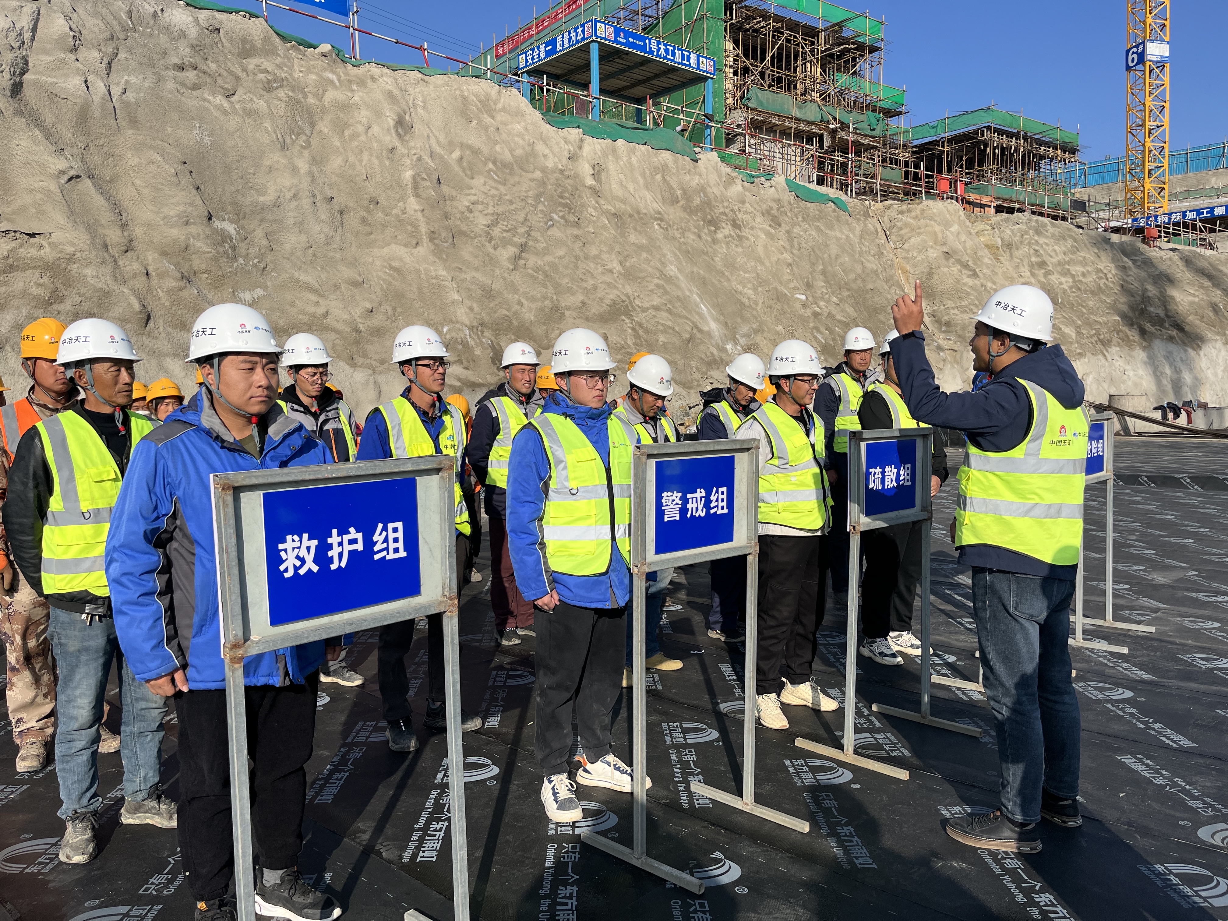 演練中,管理人員對塔吊不同類型的事故情況進行了針對性的講解,就高處墜物事故進行了演練,對事故發生后項目應急領導小組(救護組、警戒組、疏散組、聯絡組、搶險組)啟動應急救援預案,警戒、疏散、搶救等環節的可行性進行檢驗,最后項目負責人對本次演練進行總結評價,提出要進一步細化落實預案存在的遺漏和不足的要求,確保做到在意外發生時環環相扣,有條不紊。