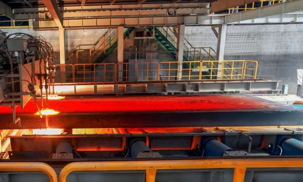 先進(jìn)技術(shù)為高端鋼材生產(chǎn)注入“硬核動力”。項目集成多項連鑄領(lǐng)域先進(jìn)技術(shù),為高品質(zhì)鋼材生產(chǎn)保駕護(hù)航。其中,SRD單輥大壓下技術(shù)堪稱“黑科技”--扇形段可根據(jù)鋼種、冷卻速率和拉速等生產(chǎn)參數(shù)動態(tài)調(diào)整單個輥縫,每根輥可提供高達(dá)5000 KN的壓下力,助力板坯形成出色微觀組織,確保鋼材機(jī)械性能穩(wěn)定;Eco Star干式澆鋼輥,大幅提升了板坯表面質(zhì)量;ABB六軸自動加渣機(jī)器人,極大降低人工工作強(qiáng)度,提高作業(yè)效率及準(zhǔn)確率。